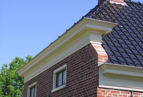 Omdat de houten goten met zinken kraal in slechte staat verkeerden zijn deze ook vervangen en voorzien van nieuw zink.