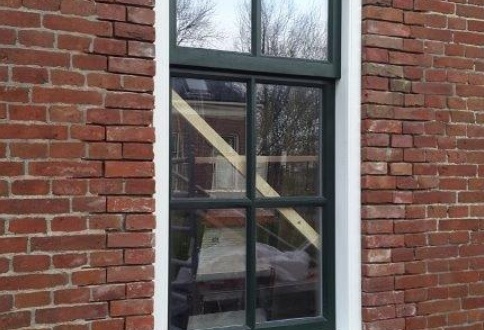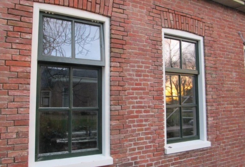 een aantal kozijnen vernieuwd. De oude kozijnen zijn verwijderd en vervangen door houten kozijnen met roeden die het pand meer recht doen.
